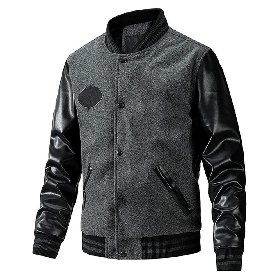 Blousons universitaires en laine pour hommes avec manches en cuir