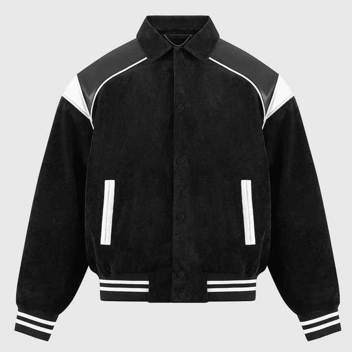 Veste universitaire en laine avec logo personnalisé pour homme, couleur unie, manches longues, logo brodé, fermeture à un bouton.