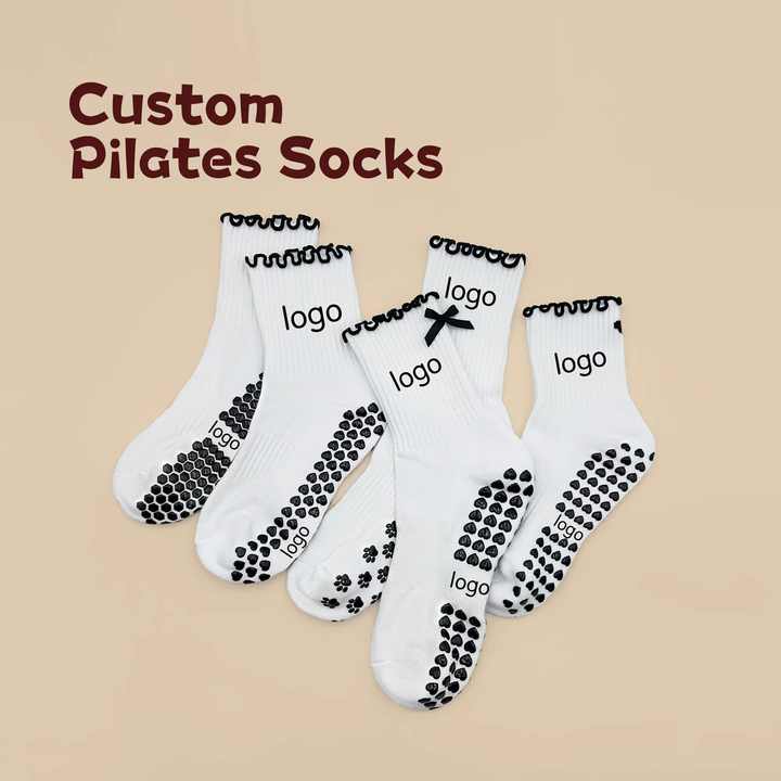 Chaussettes de Pilates pour jeunes avec logo personnalisé, antidérapantes, à semelle intégrale avec points antidérapants, 100% coton, chaussettes mi-mollet pour le yoga et le Pilates