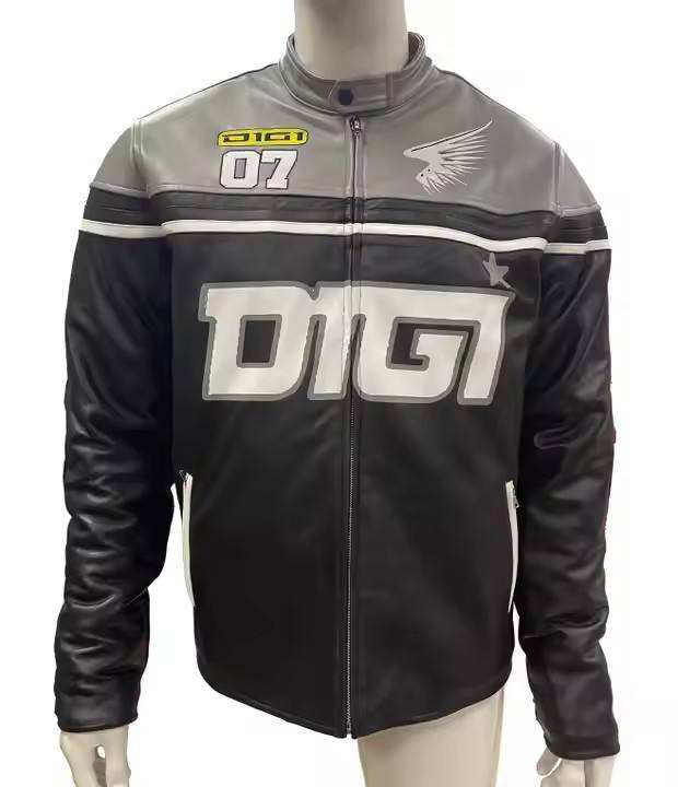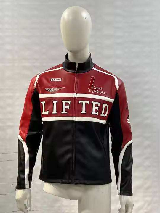 Veste en cuir de course à fermeture éclair avec logo personnalisé, col montant, style décontracté d'été, service OEM, broderie et conception de texte