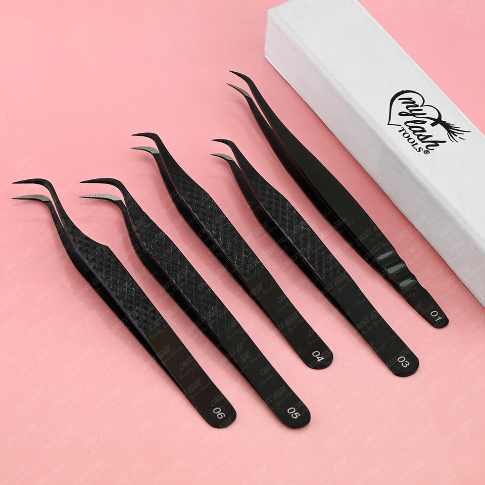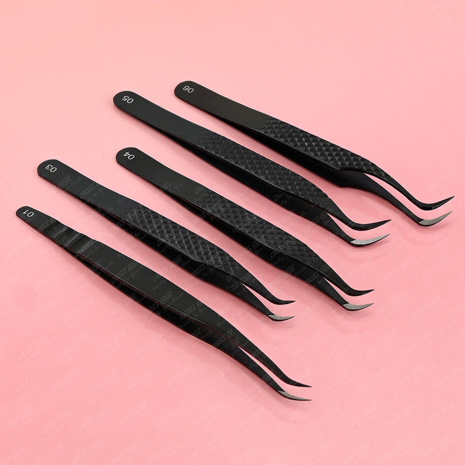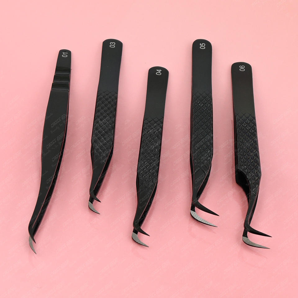 Quality:High Quality Black tweezers Hook Curved tip eyelash tweezer