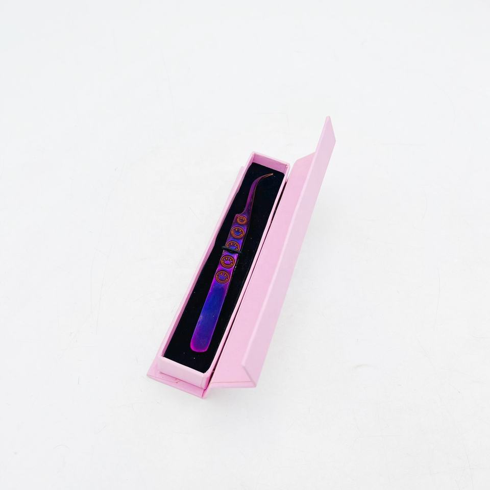Pince à épiler en acier inoxydable durable incurvée et gravée pour extension de cils Logo personnalisé pour pince à épiler visage souriant pour artistes cils