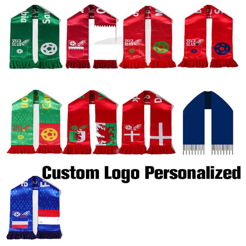 Écharpe de supporter de football mondial avec logo personnalisé, 100% acrylique, tricotée, double fan, style long avec impression numérique pour les clubs