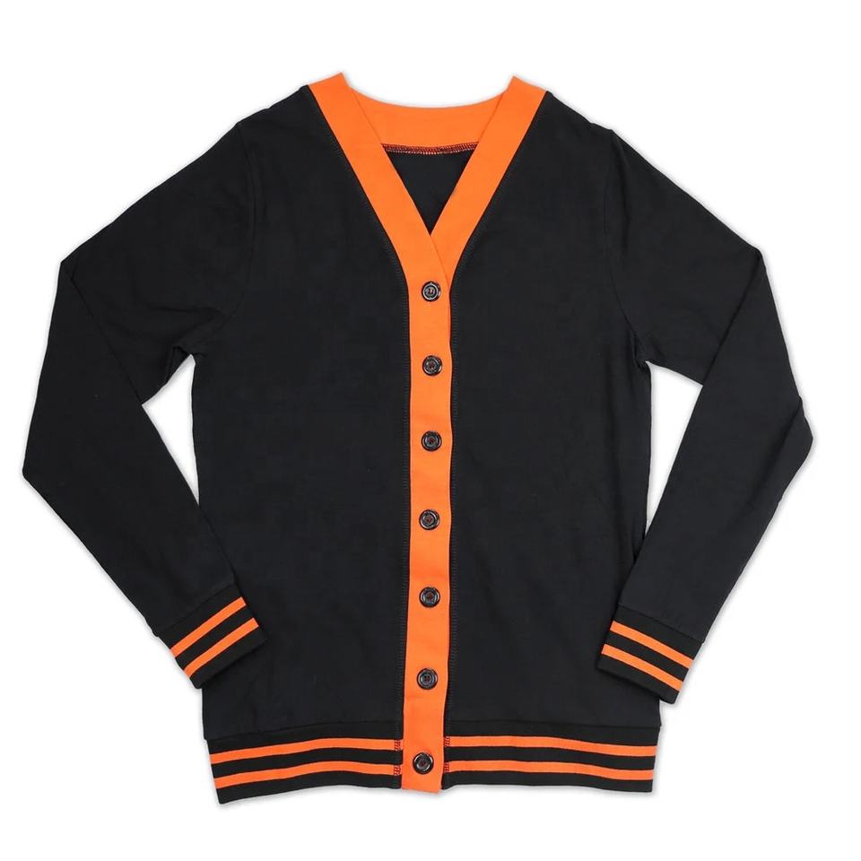Logos personnalisés sur Orange et noir pull à manches longues en tricot femmes chandails Cardigans col en V sororités & collège fraternité