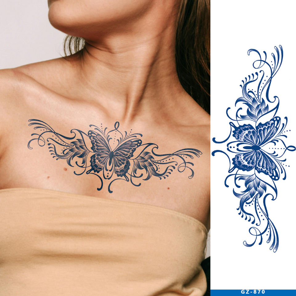 Tatouage temporaire personnalisé longue durée 14 jours, imperméable, faux tatouage papillon à base de plantes, semi-permanent pour femmes