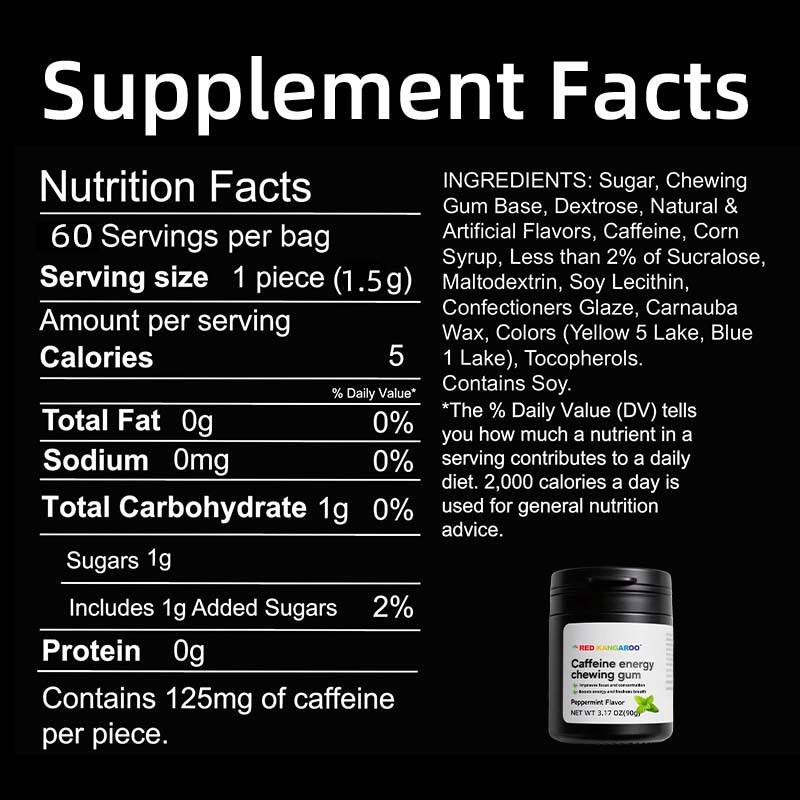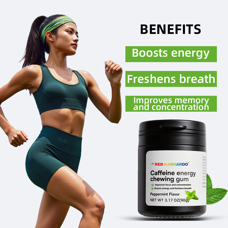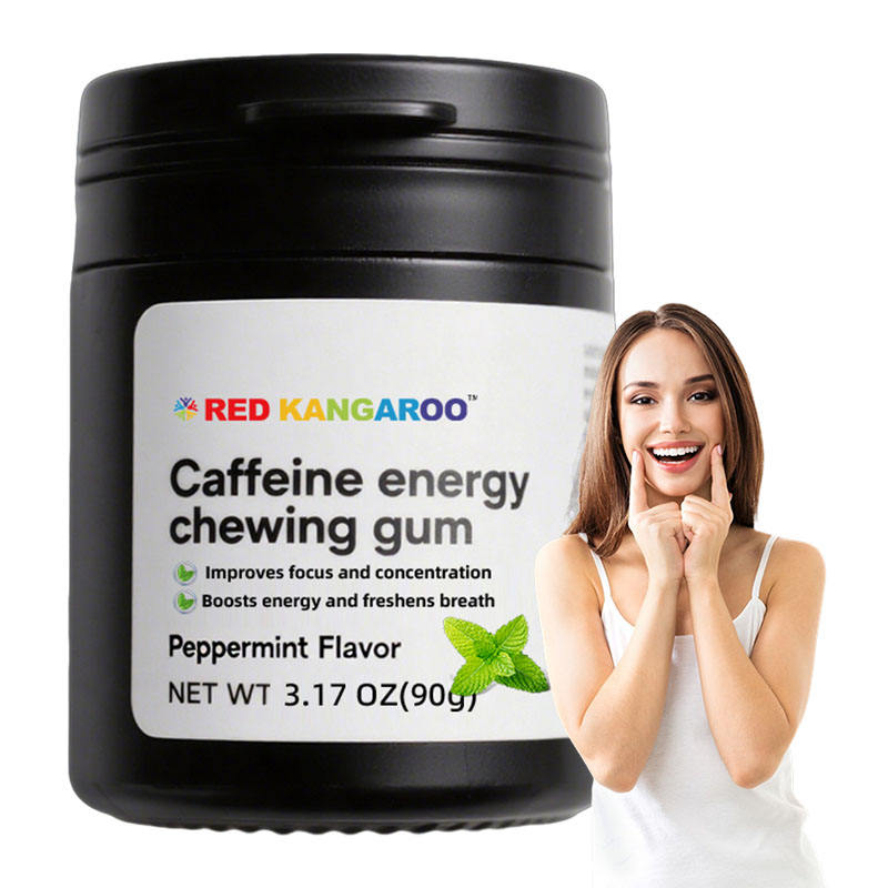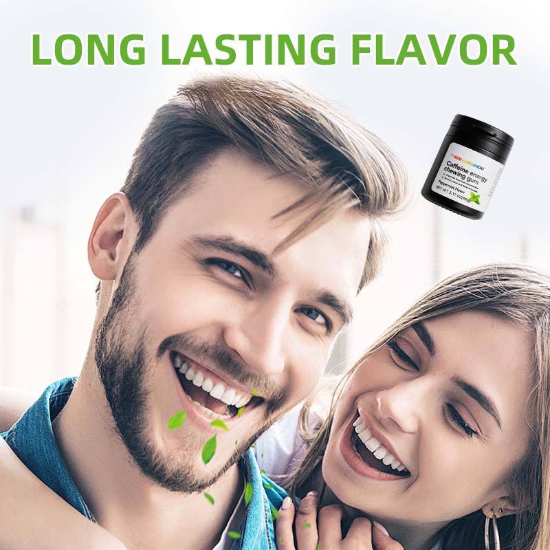 Chewing-gum personnalisé longue durée menthe poivrée caféine énergie végétalien sans sucre soutien énergie haleine fraîche