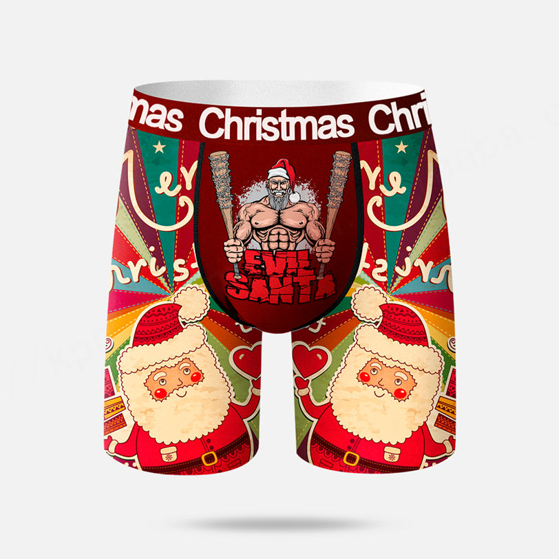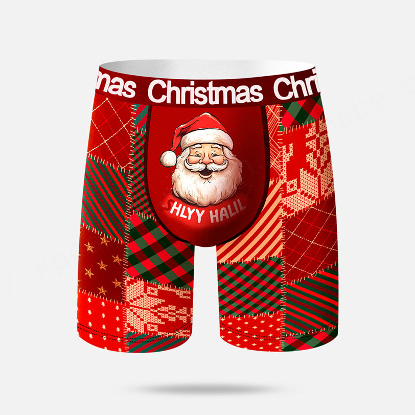 Caleçon personnalisé pour homme à jambes longues Pochette amusante sans mouche Caleçon boxer en polyester à séchage rapide pour homme adulte Sous-vêtement de Noël pour homme