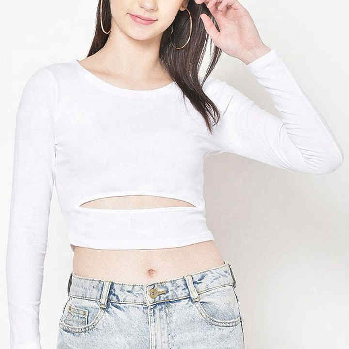 T-shirt court personnalisé à manches longues et découpes, en coton, coupe ajustée, pour femme, avec logo personnalisé, marque privée, OEM