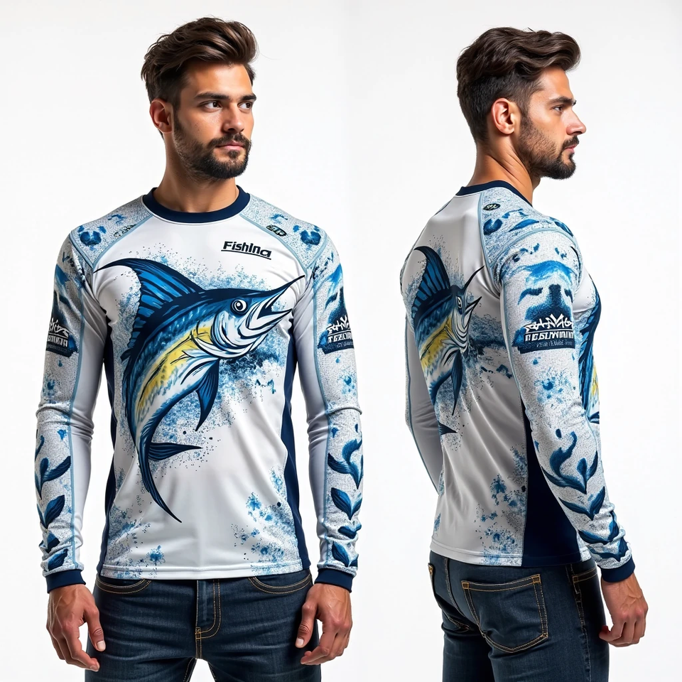 Men's Ultra Lightweight DryFit Fabric UPF 50 Fishing Jersey Full Customizediza Long Sleeve for Outdoor