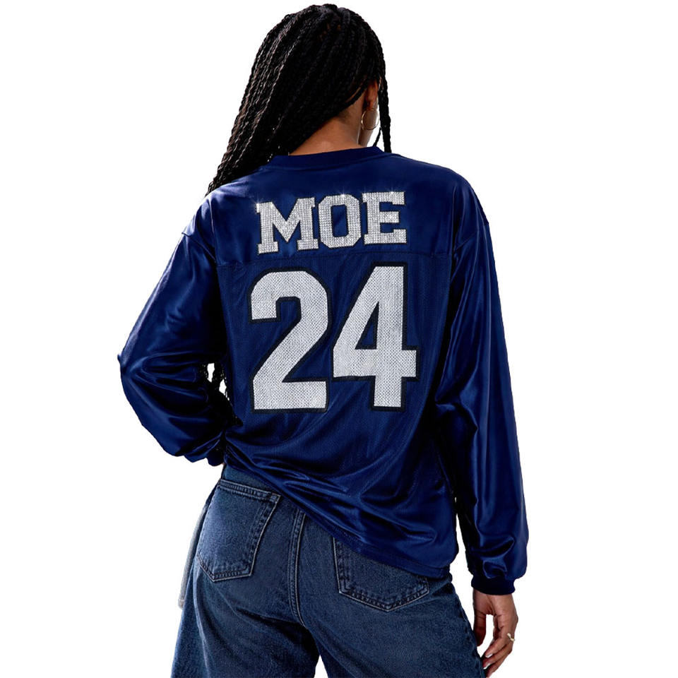 Maillot de football personnalisé à manches longues avec lettres en strass, haut athlétique en maille, streetwear oversize, fournisseur de maillots de football américain