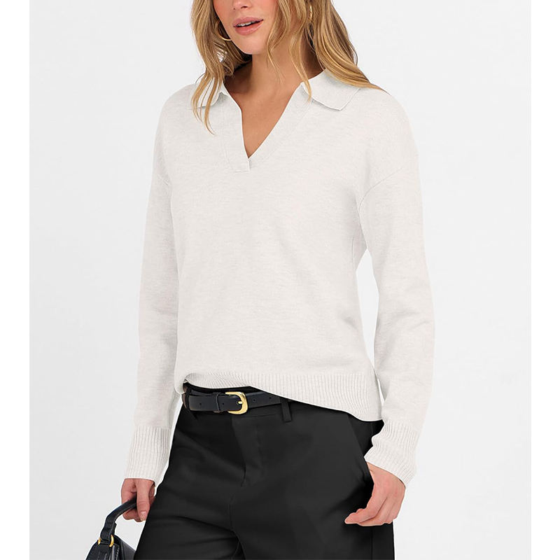 Chemise à manches longues grise personnalisée Automne Printemps Bureau Décontracté Léger Col polo Pull en tricot pour femmes