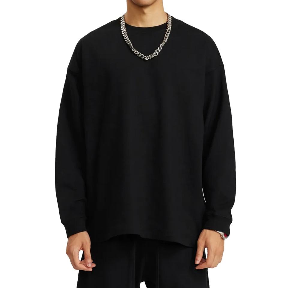 T-shirts personnalisés à manches longues grande taille pour hommes 2026 – T-shirt épais 100 % coton à manches longues surdimensionné pour garçons, femmes et étudiants