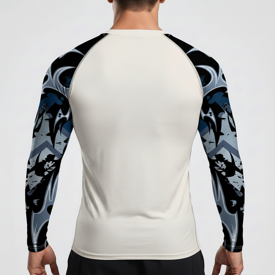 Haut de compression MMA à manches longues personnalisé avec manches imprimées par sublimation, idéal pour l'entraînement BJJ et la gym pour hommes (Rashguard)