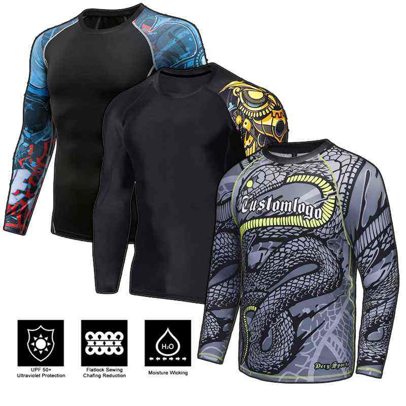Maillot de compression unisexe à manches longues personnalisé pour le surf, le BJJ, le MMA, le Jiu Jitsu, le grappling, vêtements de sport UPF50 respirants et à séchage rapide