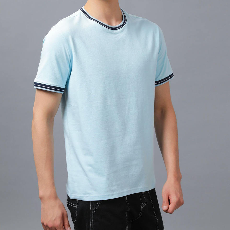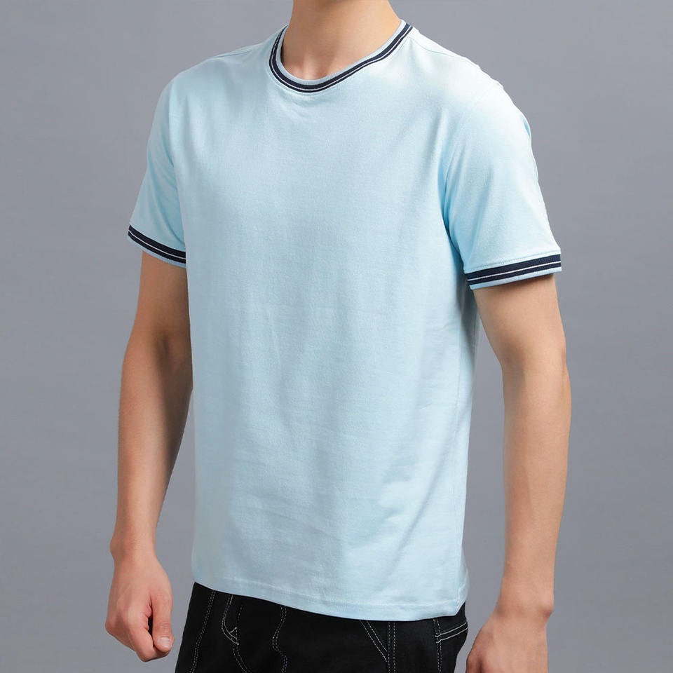 T-shirt Homme Ample Personnalisé à Manches Courtes en Coton Doux Col Rond Streetwear Col Côtelé Contrastant Fournisseur OEM ODM Marque Privée