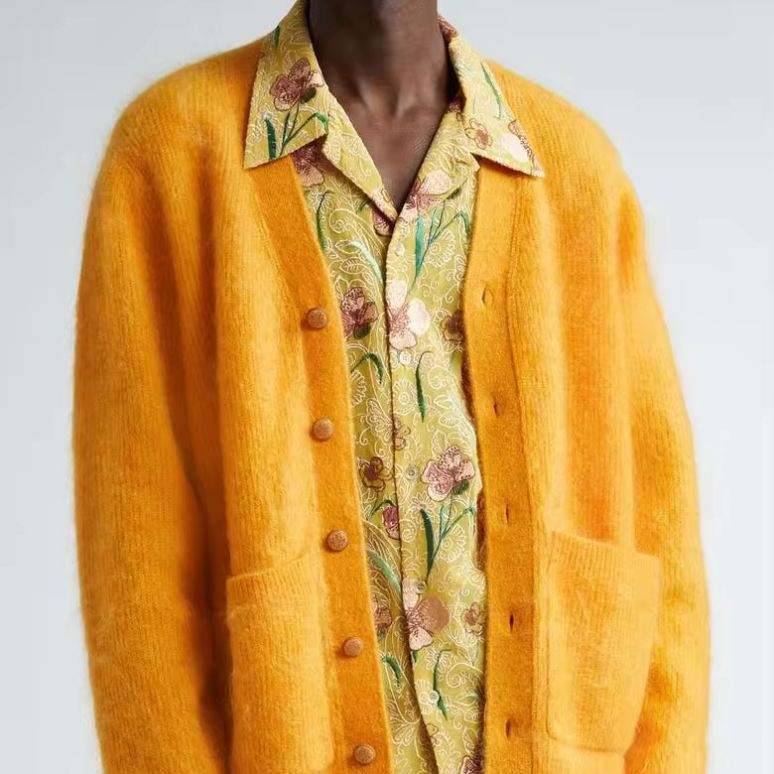 Cardigan à fourrure en tricot ample personnalisé pour hommes avec poches Cardigan à manches longues en mélange de mohair