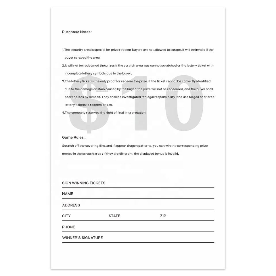 Nom du produit:Gagner Lotto Scratch Carte de billets de loterie