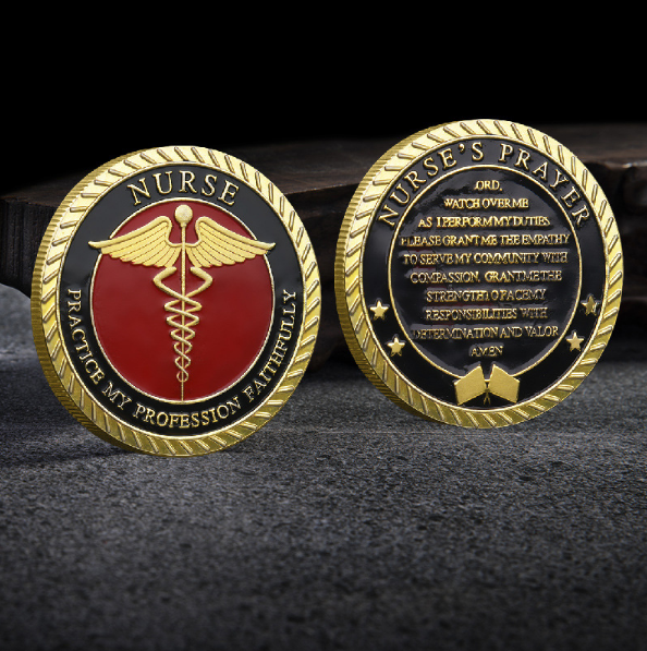 Stock de pièces de monnaie personnalisé à bas prix Pièce de monnaie commémorative en métal pour artisanat Souvenir Profession médicale sur le thème Caducée professionnel