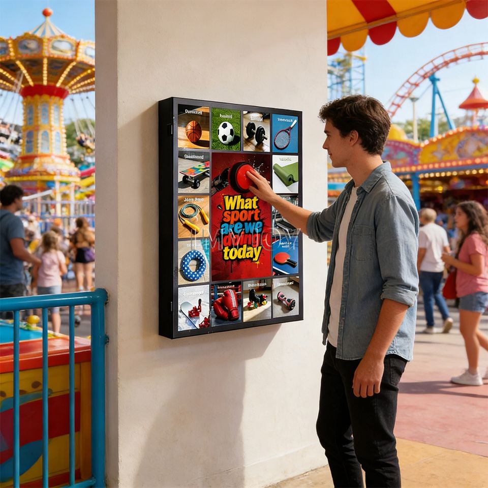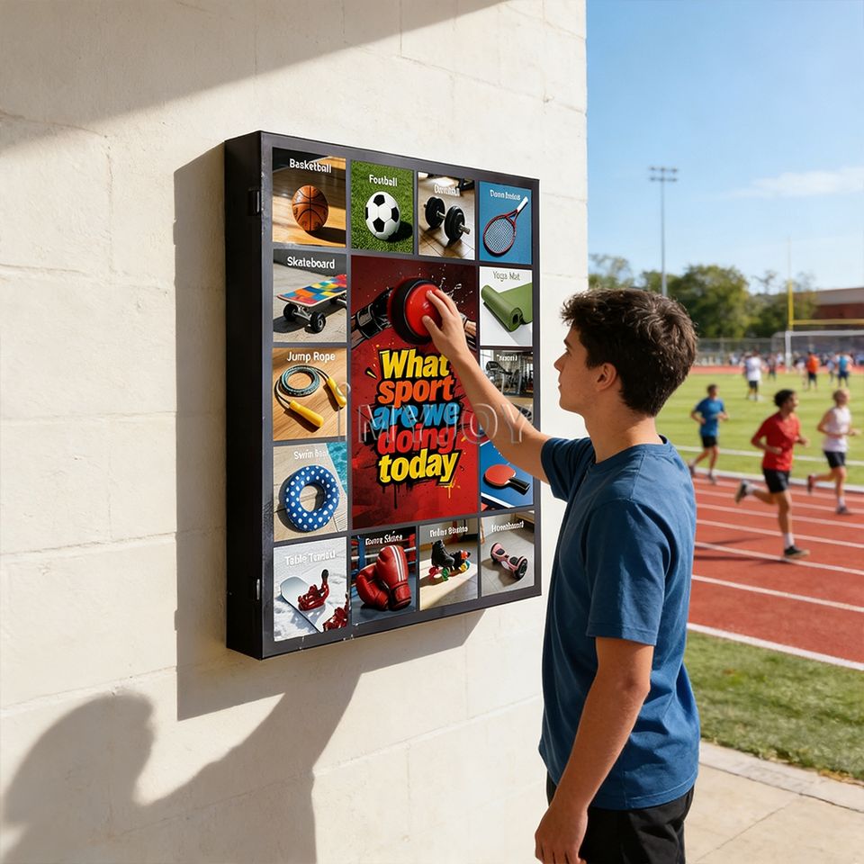 Tableau de jeu interactif personnalisé pour tirage de loterie bingo, avec bouton poussoir de sélection aléatoire pour décisions d'activités