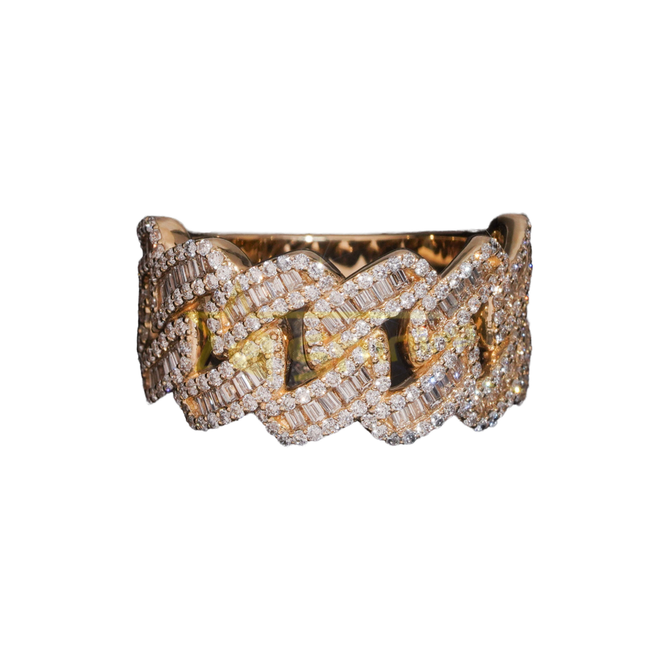 Bague de Mariage et de Fiançailles pour Homme en Or Massif 10K de Luxe Personnalisée avec Moissanite HPHT Ronde Taille Brillant et Demi-Pavé Style Hip Hop Cubain