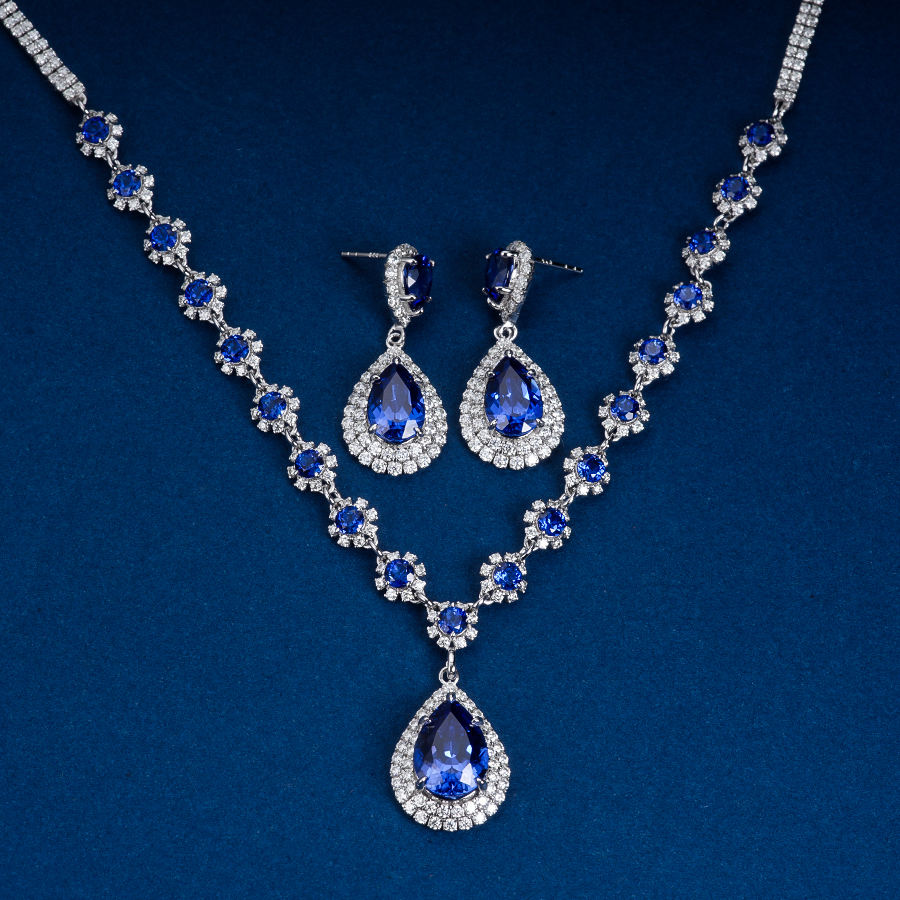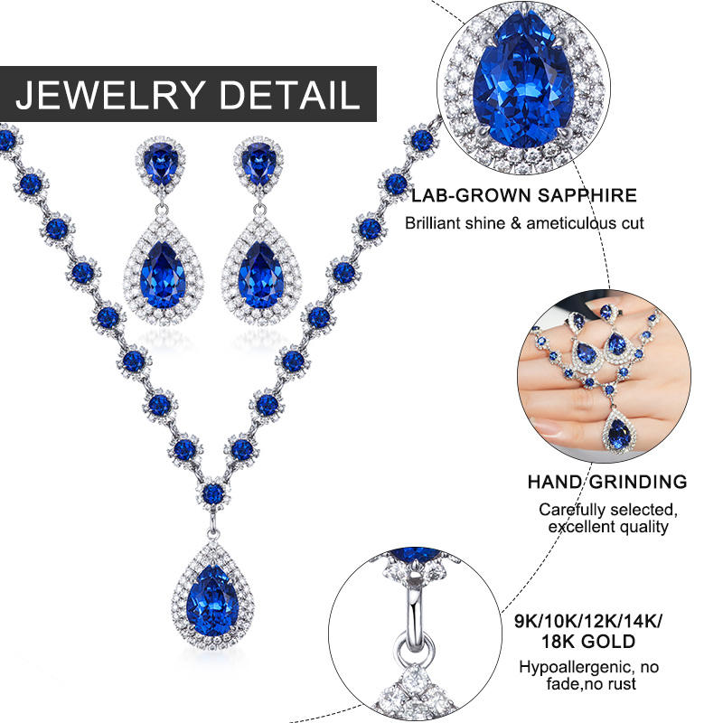 Ensemble de bijoux élégants en or 18 carats plaqué or, certifié IGI, avec diamants et saphir bleu GRC, pour mariages et fêtes