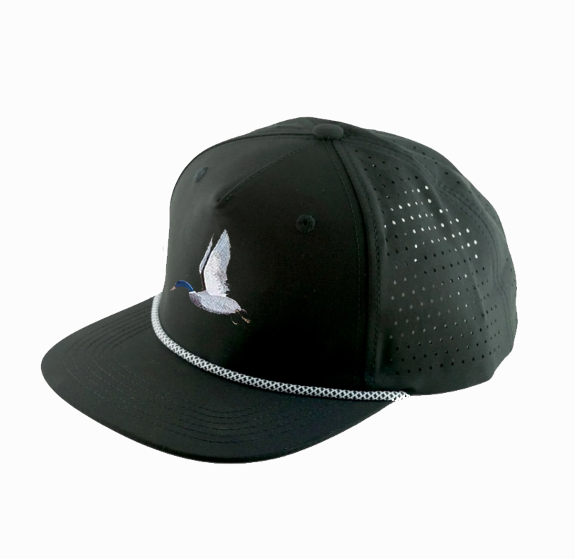 Casquette de golf sportive de luxe personnalisée à 5 panneaux, structurée, à visière plate, avec cordon, imperméable, séchage rapide, logo brodé