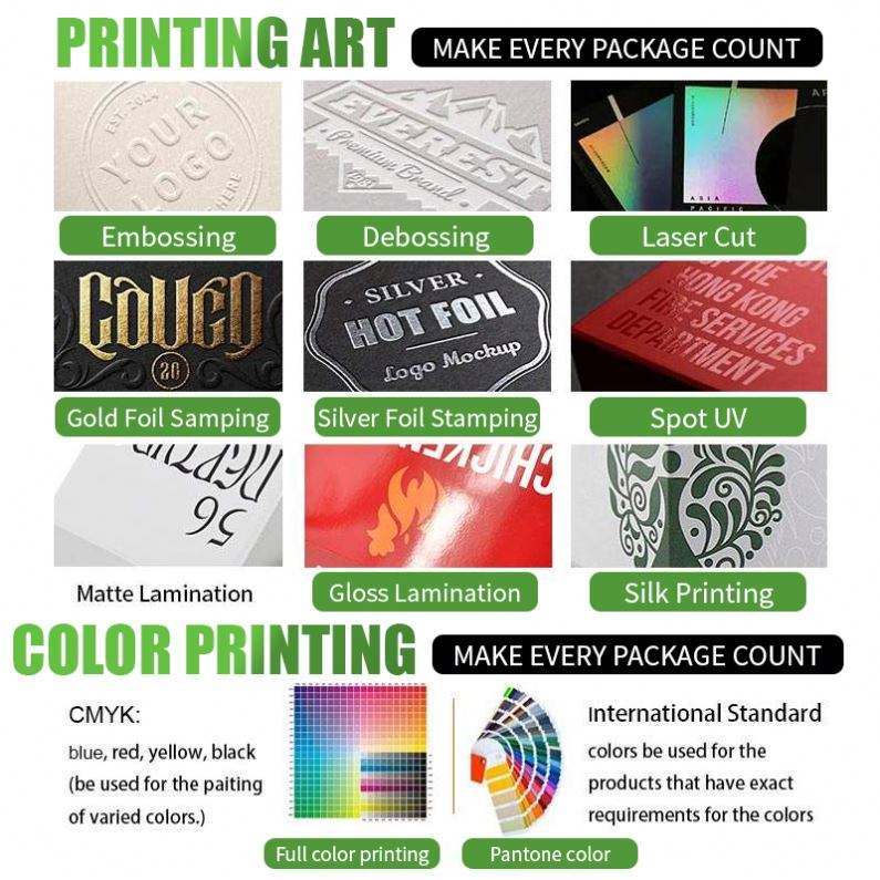 Impression flexographique, Timbre d'or, impression offset, IMPRESSION D'ÉCRAN DE SOIE, Impression UV, Gaufrage, Estampage, Vernis UV, Dorure à chaud