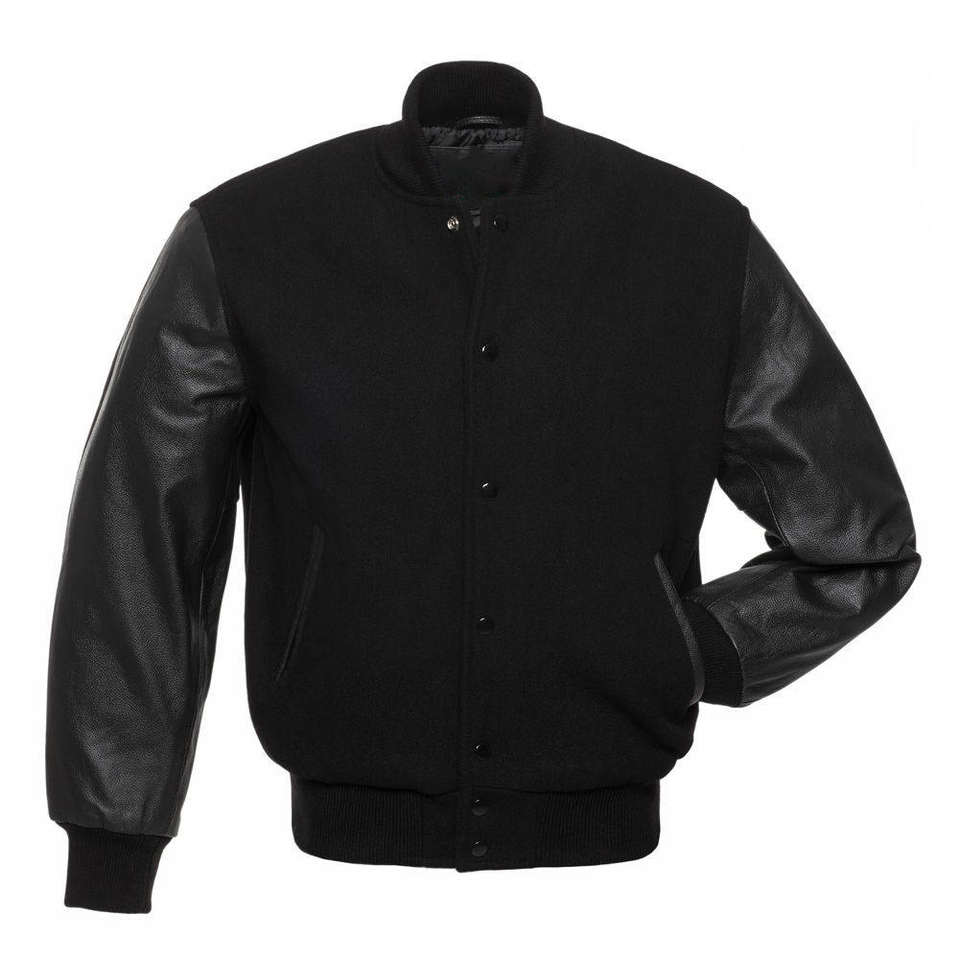 Veste universitaire noire de luxe personnalisée pour hommes veste universitaire à manches en cuir Letterman pour hommes confortable de haute qualité OEM