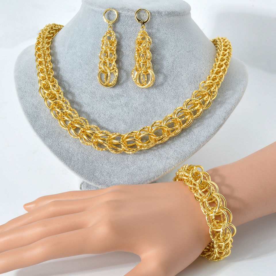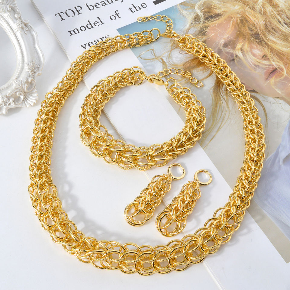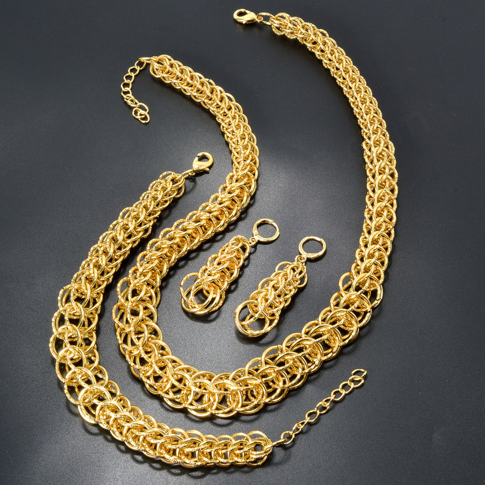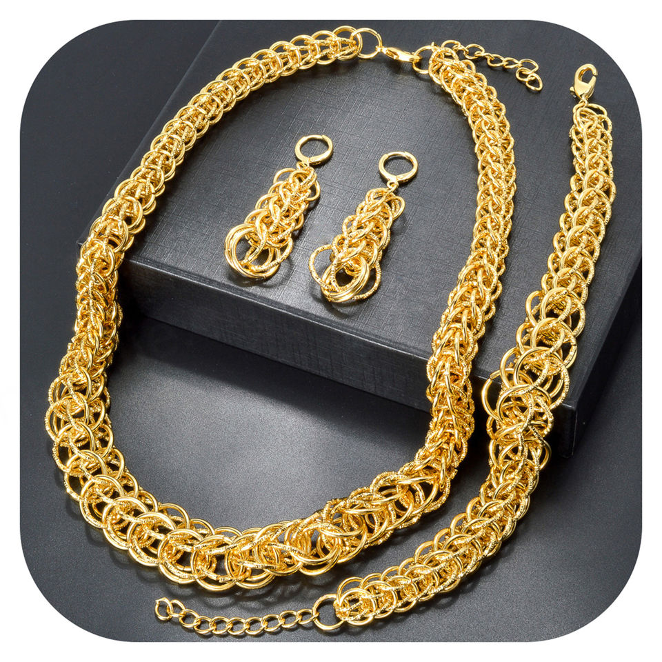 Ensemble de bijoux pour femmes, collier, bracelet et boucles d'oreilles, en laiton de luxe plaqué or 18 carats, pour mariage, fiançailles et fêtes
