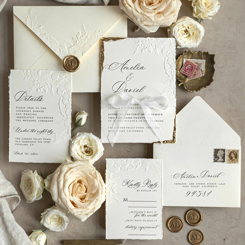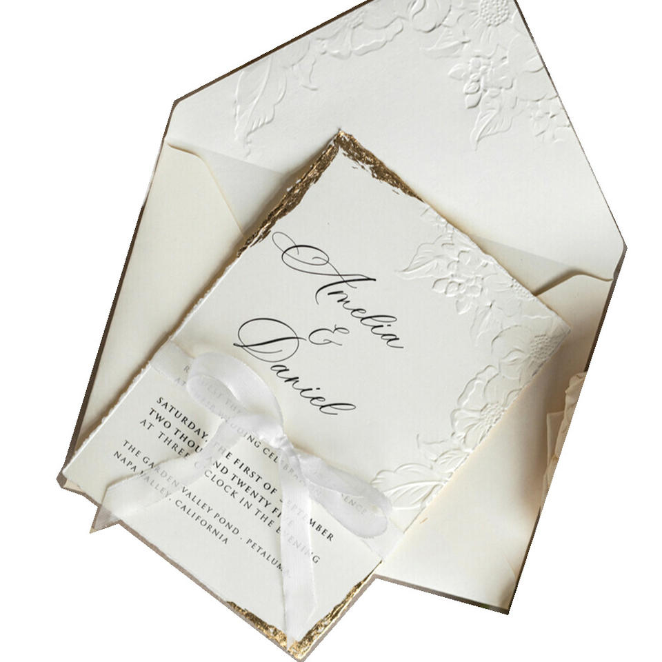 Cartes d'invitation de mariage personnalisées de luxe, gaufrées, imprimées en héliogravure, style européen, design élégant pour la mariée, niche haut de gamme