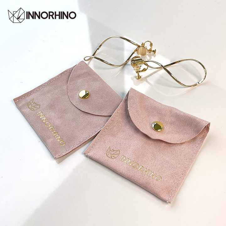 Pochette à bijoux en velours de luxe personnalisée avec bouton pression pour emballage cadeau de boucles d'oreilles, colliers et bijoux