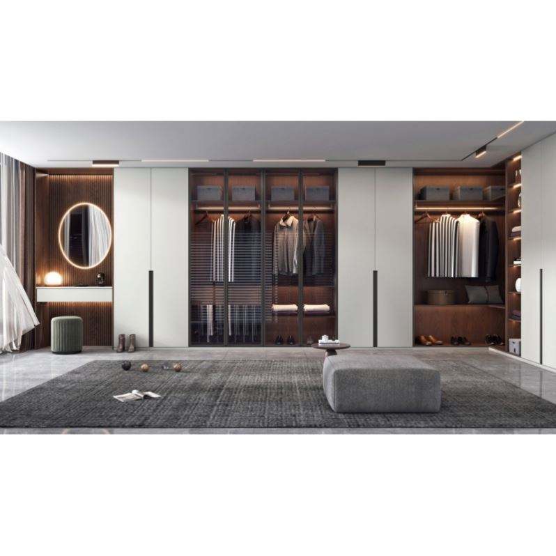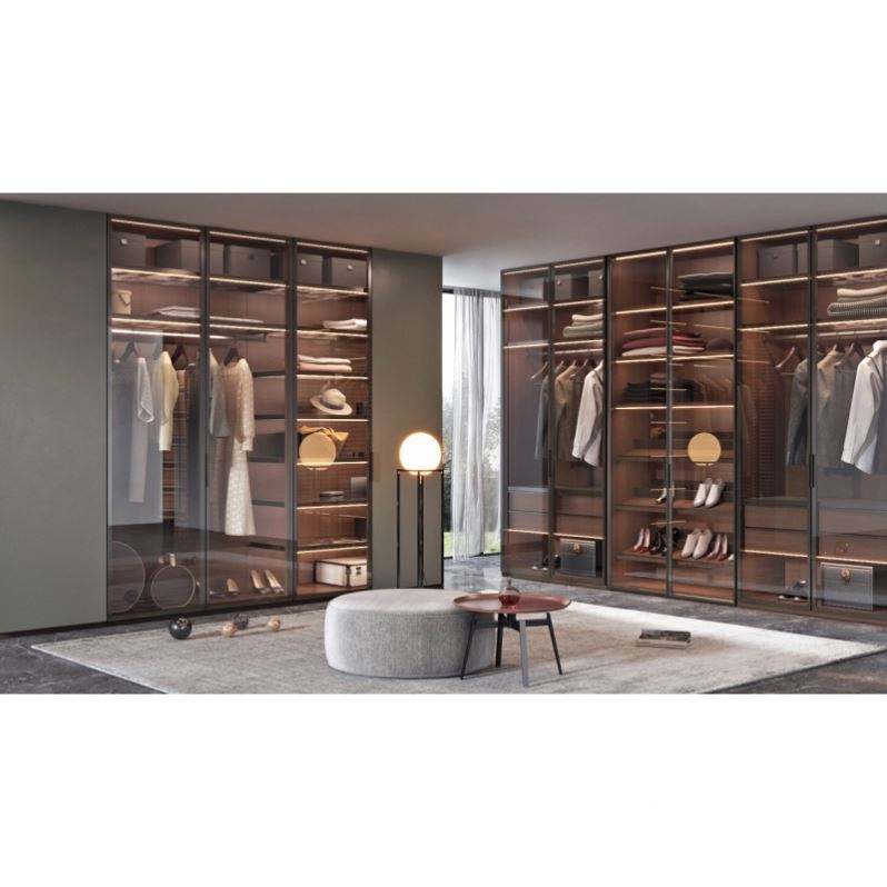 Custom Luxury Glass Door Wooden Wardrobe Bedroom Furniture Storage Organizer Wardrobes Storage Shelves Bedroom Closets