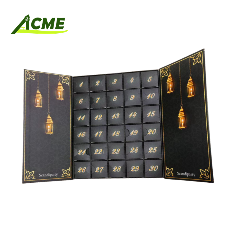 Boîte cadeau de luxe personnalisée avec logo doré Eid Mubarak en arabe, dattes, chocolat, calendrier de l'avent du Ramadan de 30 jours