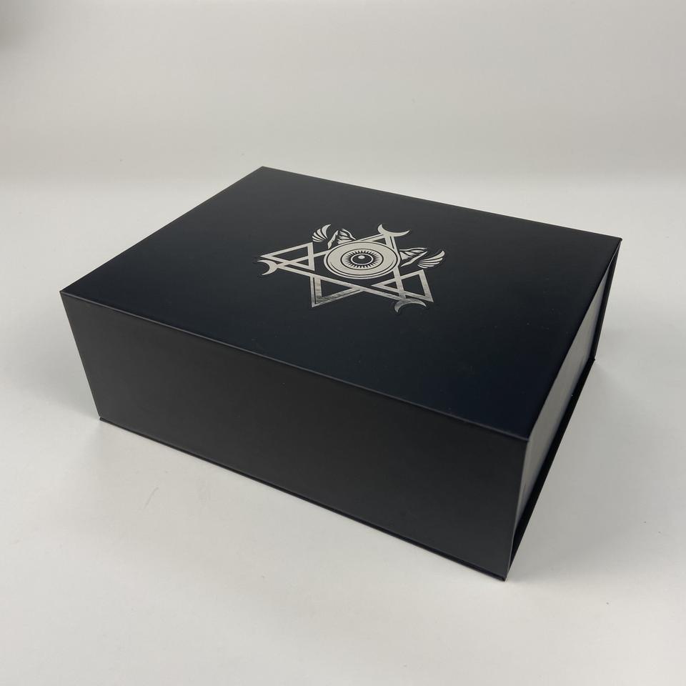Boîte-cadeau en papier rigide avec impression de logo noir haut de gamme de luxe personnalisé avec insert en mousse graphique occulte pour produit Streetwear Tech
