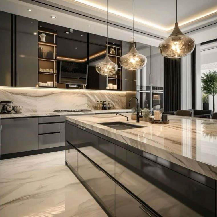 Fournisseur de meubles de cuisine en bois de luxe sur mesure, finition brillante, pour cuisine moderne, évier, îlot, meubles de cuisine, design