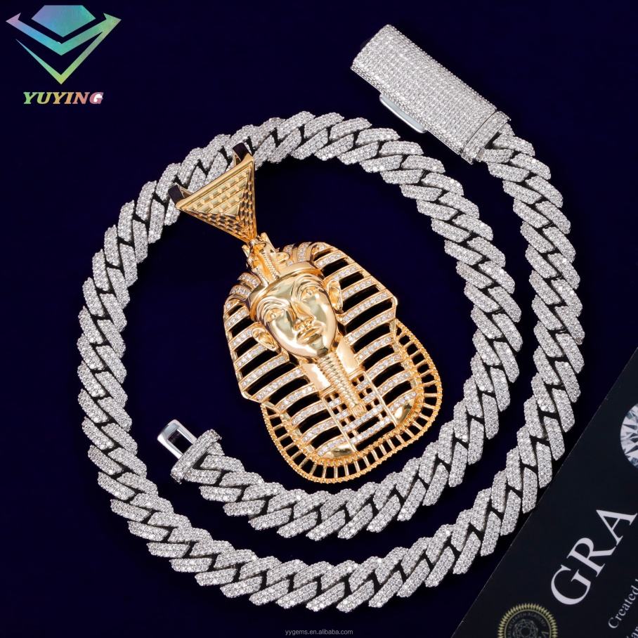 Pendentif Pharaon de luxe personnalisé, plaqué or 18 carats, bijoux hip-hop, moissanite VVS, pendentif en argent sterling 925, diamants