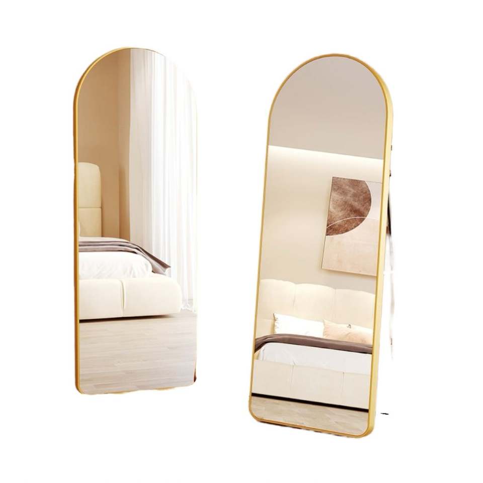 Miroir mural de dressing sur pied, grand, arqué, doré, de luxe, fait main, moderne, pleine longueur, en verre trempé, décoratif