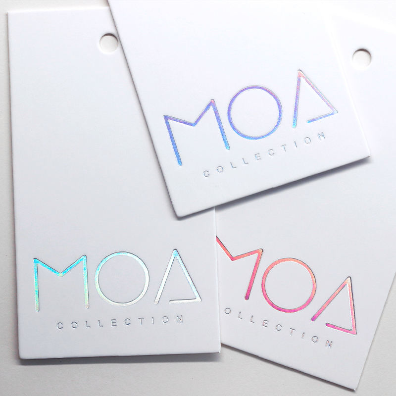 Etiquette suspendue laser de luxe personnalisée étiquette volante en papier holographique pour vêtement vêtement