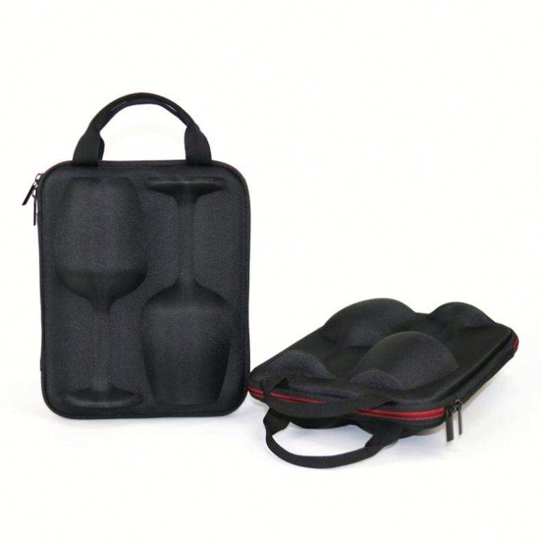 Étui de transport et de rangement de luxe personnalisé en cuir rigide antichoc avec coque EVA pour verres à vin et bouteilles