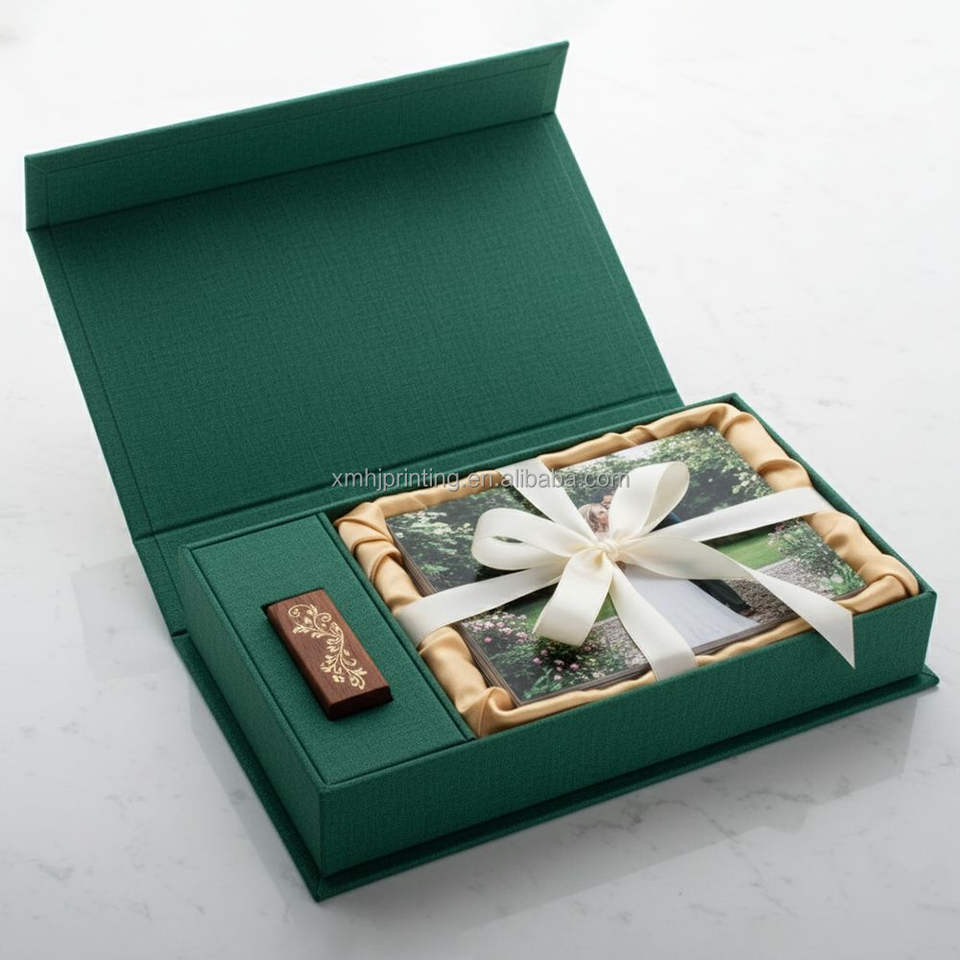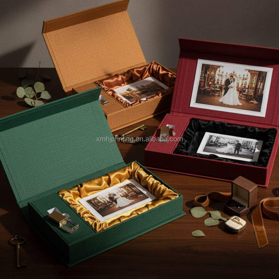Boîte-cadeau USB de mariage en lin de luxe personnalisée Couverture en lin Album photo Photos et stockage USB pour photographie