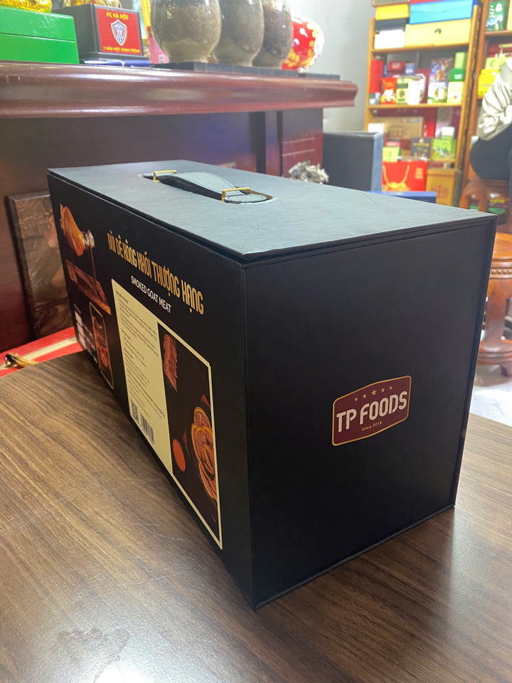 Boîte d'emballage de luxe personnalisée pour cuisse de chèvre fumée de qualité supérieure, conception de boîte cadeau rigide pour jambon gastronomique, service OEM/ODM en gros