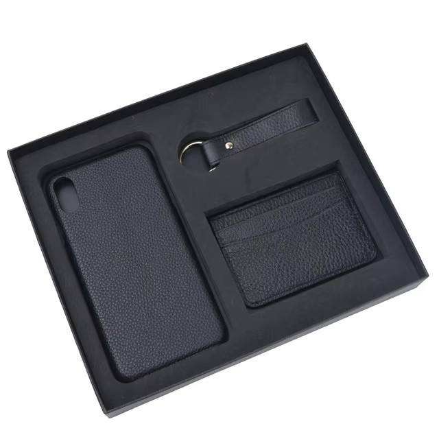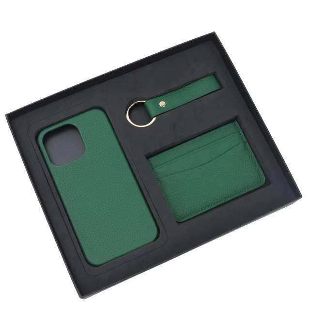 Ensemble cadeau personnalisé de porte-clés en cuir Pebble de luxe, porte-cartes, étui de téléphone pour les séries de téléphones 12, 13, 14