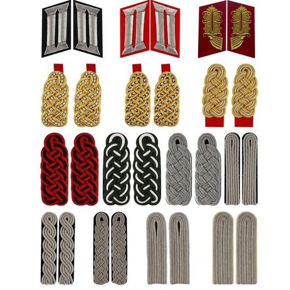 Épaulettes d'uniforme de luxe sur mesure, reproduction allemande de qualité supérieure, brodées à la main, en dentelle, à coudre, avec fermeture auto-agrippante, 100% bouillon, pour uniformes