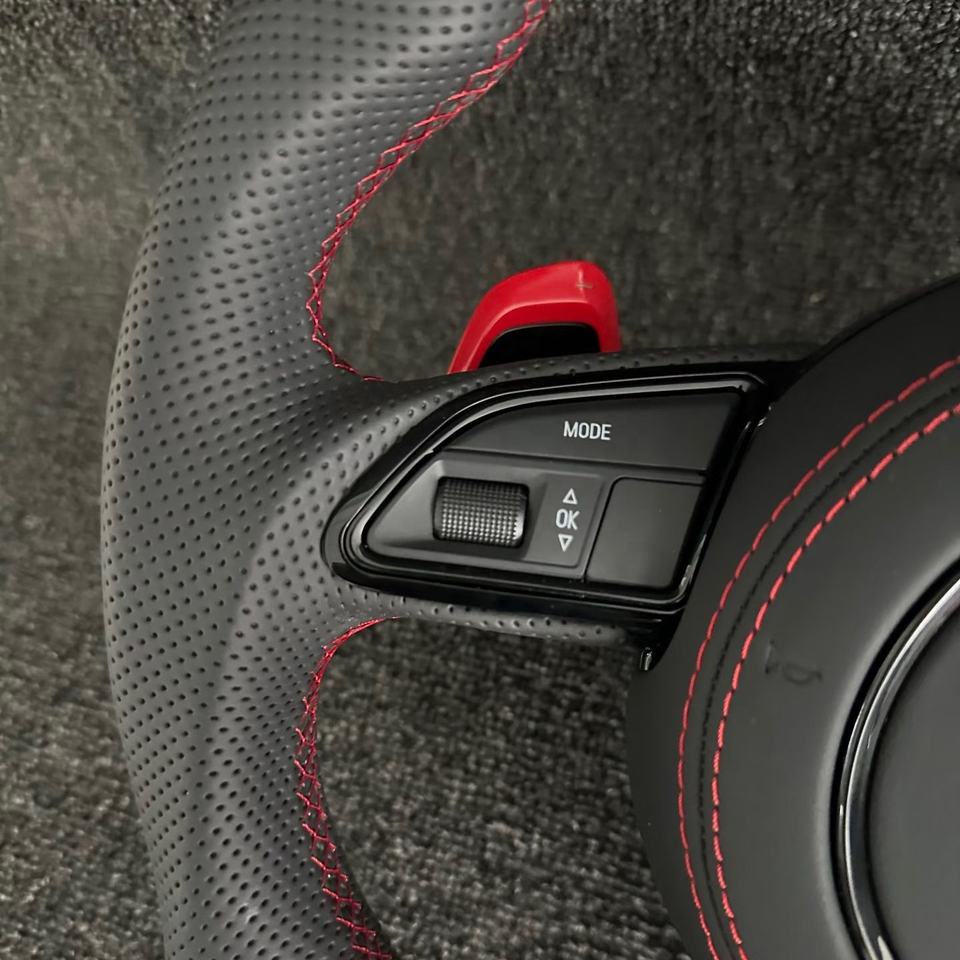 Volant personnalisé de luxe en cuir et fibre de carbone véritable avec surpiqûres rouges pour Audi A3 A4L A5 A6L A7 A8 Q5 Q7 Q8 TT R8