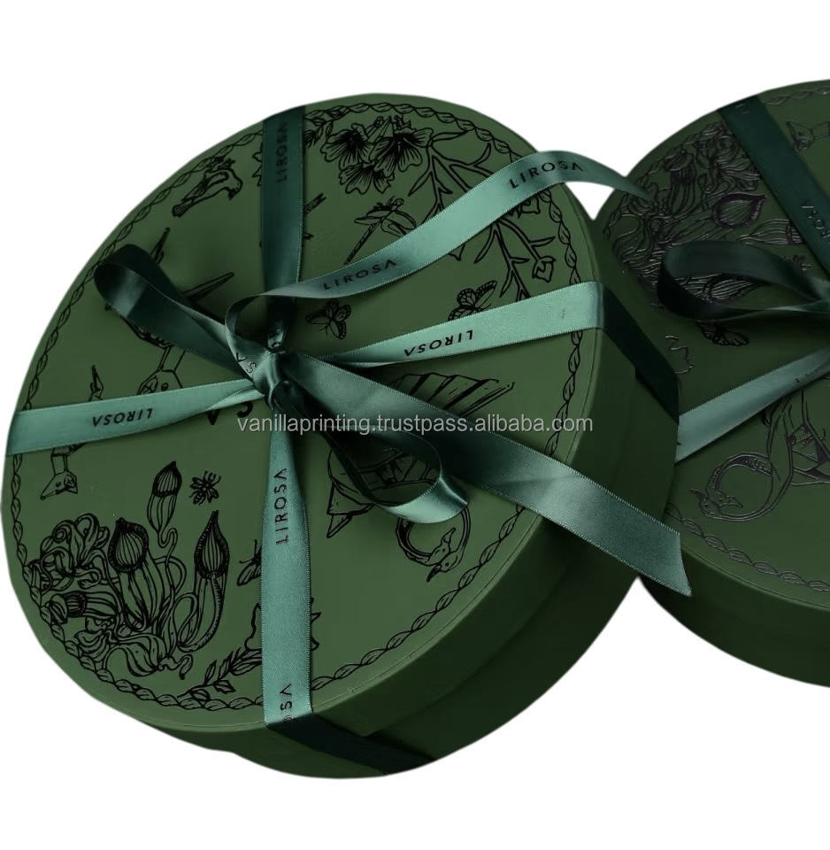 Boîte cylindrique ronde en papier tactile personnalisée de luxe Coffrets cadeaux de luxe UV rigides écologiques pour l'artisanat et l'image de marque Feuille réutilisable