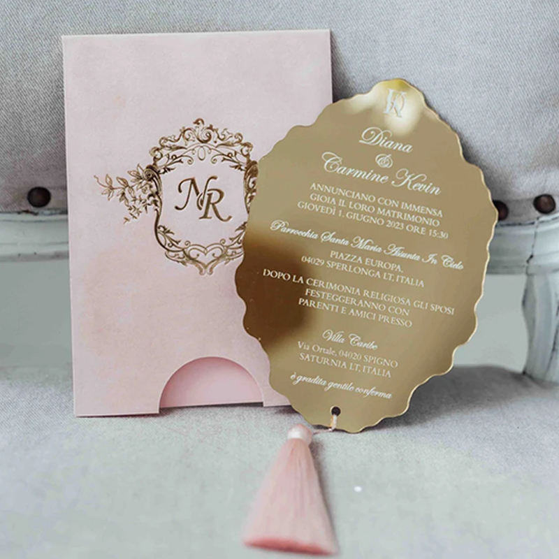 Nom du produit:Invitation de mariage acrylique miroir d'or personnalisé