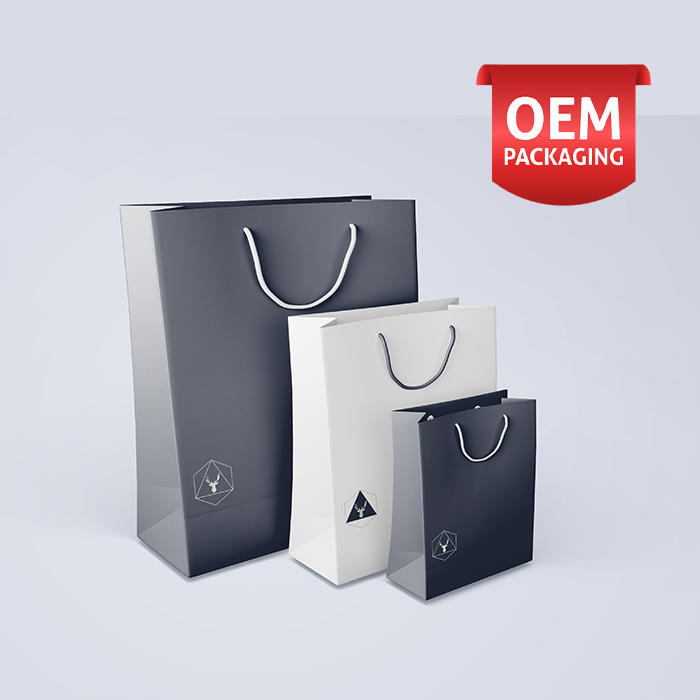Sac en papier commercial de luxe personnalisé OEM ODM papier d'art enduit estampage à chaud de logo pour l'image de marque et la vente au détail