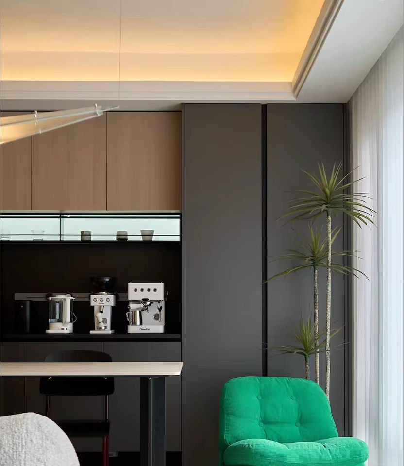 Meuble de cuisine moderne en bois massif de style luxe personnalisé avec îlot central et rangement intégré pour espace cuisine-salon