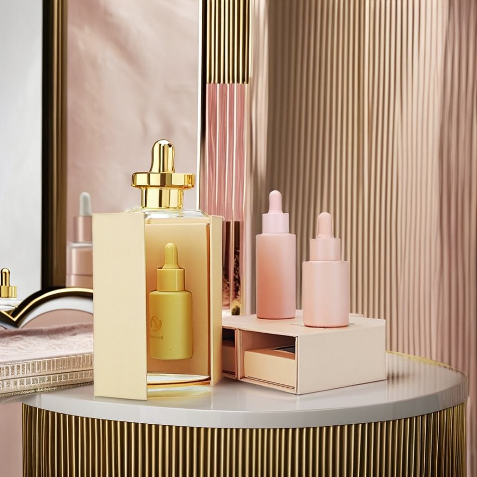 Custom Luxury Transparent Glass Serum Dropper Essential Oil Glass 30ml Cosmetic Dropper Bottle