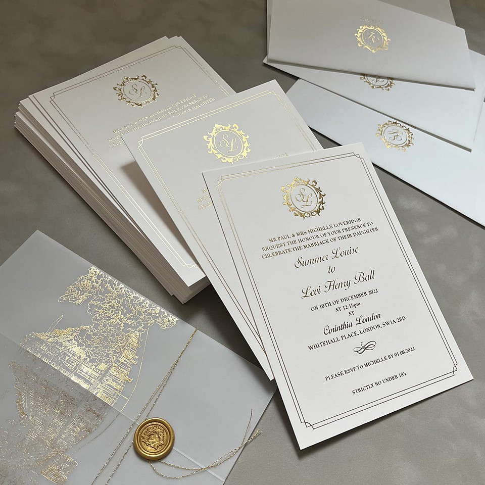 Inclure:Carte d'invitation + veste en vélin + enveloppe